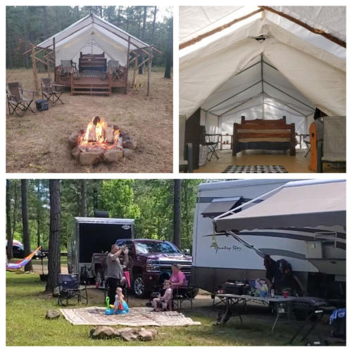** Scenic Camping Sites **Choose from a variety of campsites, including RV sites and tent sites, all thoughtfully situated to provide the best views and easy access to nature.** Glamping Options **Experience the luxury of our glamping tents, offering a unique blend of comfort and the great outdoors.** Adventure Activities **Embark on thrilling ATV rides, explore miles of hiking and biking trails, or try your hand at fishing in the clear mountain streams and lakes.** Amenities **Enjoy the convenience of clean restrooms, hot showers, and a well-maintained campground.**Community Vibes:**Connect with fellow outdoor enthusiasts and make lasting memories with friends and family.